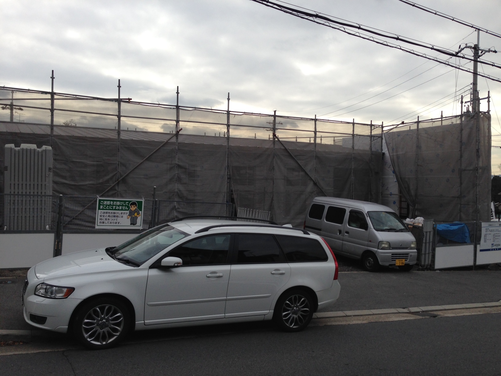 城陽市で建築中の歯科医院です。平屋建てですが、壁を大きくし看板を兼ねることで、特徴のある建物にしています。2月末に竣工予定です。